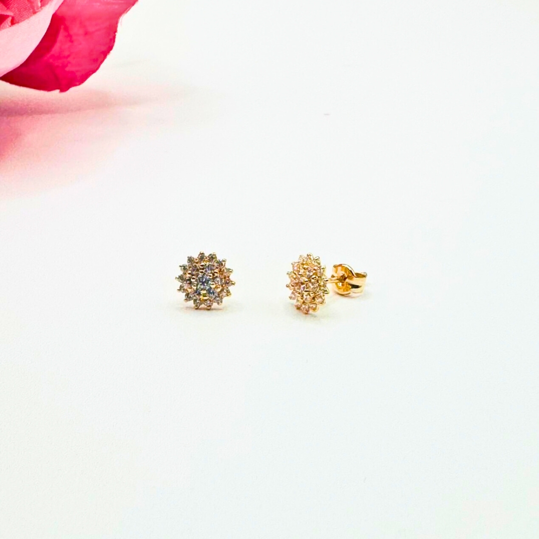 Pendientes ideales para la Primera Comunión en forma de rosetón con circonitas.