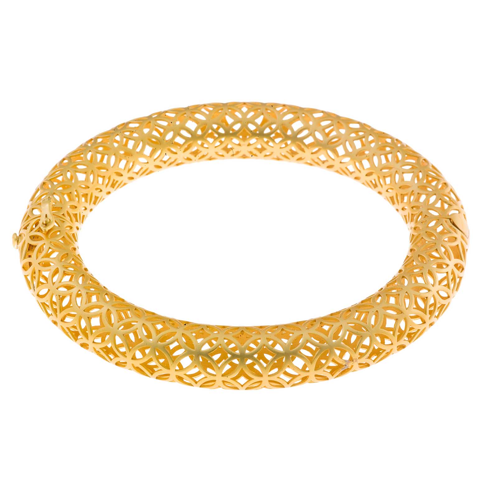 PULSERA CAÑA PLATA CHAPADO DORADO TUBO CALADO CIRCULOS ENTRELAZADOS MATE