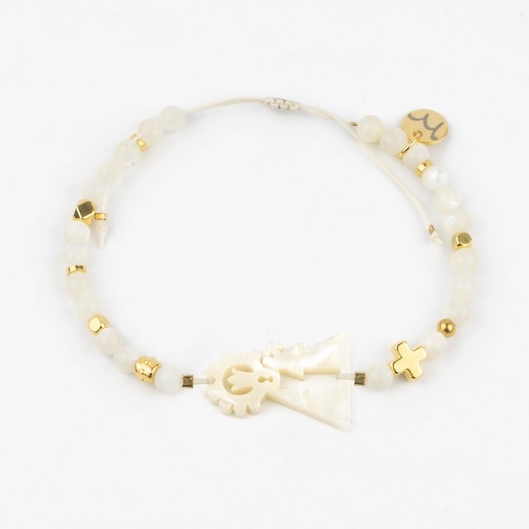 Pulsera ajustable de perlas de concha y pieza de acetato de color nácar.